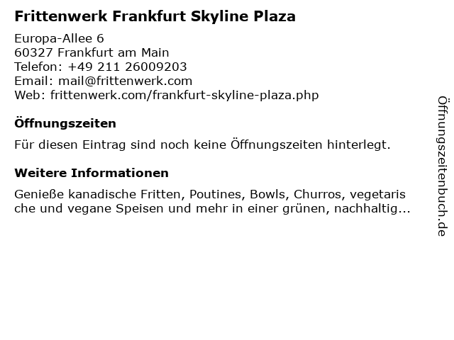 | Frittenwerk Frankfurt Skyline Plaza anrufen | |