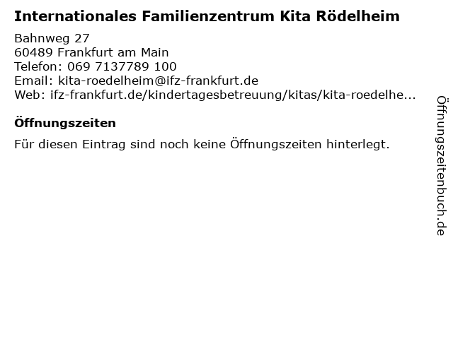 | Internationales Familienzentrum Kita Rödelheim anrufen | |