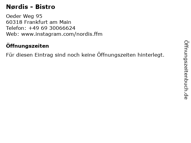 | Öffnungszeiten Nørdis - Bistro in Frankfurt am Main anzeigen | |