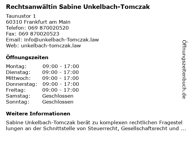 Branchen & Suchbegriffe zu Rechtsanwältin Sabine Unkelbach-Tomczak:rechtsanwältin, sabine, tomczak, unkelbach |
