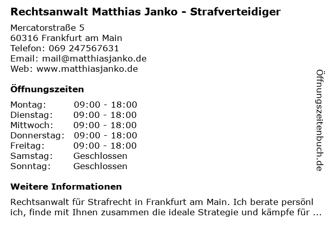 Branchen & Suchbegriffe zu Rechtsanwalt Matthias Janko - Strafverteidiger:janko, matthias, rechtsanwalt, straftrechtsanwälte, strafverteidiger |