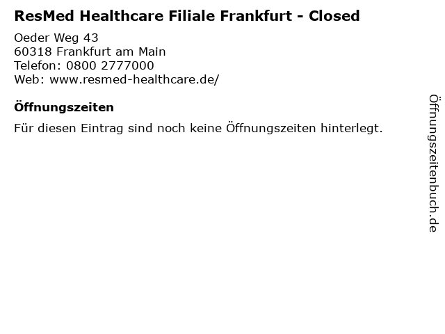 | ResMed Healthcare Filiale Frankfurt - Closed anrufen | |