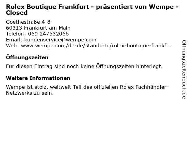 | Rolex Boutique Frankfurt - präsentiert von Wempe - Closed anrufen | |
