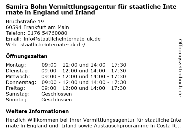 Branchen & Suchbegriffe zu Samira Bohn Vermittlungsagentur für staatliche Internate in England und Irland:auslandsstudienprogramm, bohn, england, internate, irland, samira, sprachschule, staatliche, vermittlungsagentur |