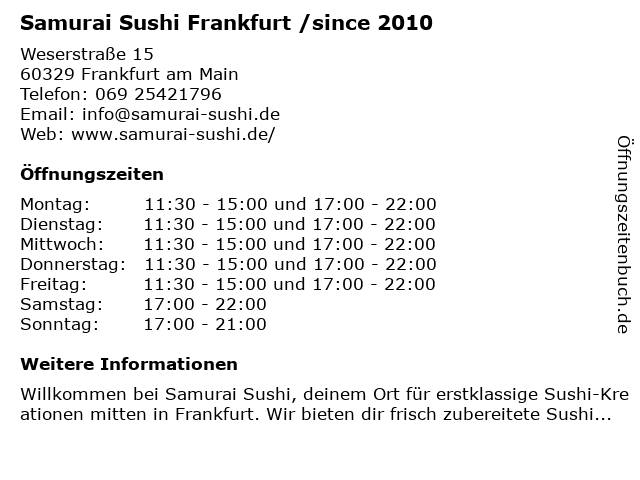 Branchen & Suchbegriffe zu Samurai Sushi Frankfurt /since 2010:/since, 2010, samurai, sushi |