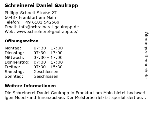 | Montag | 07:30-17:00 |