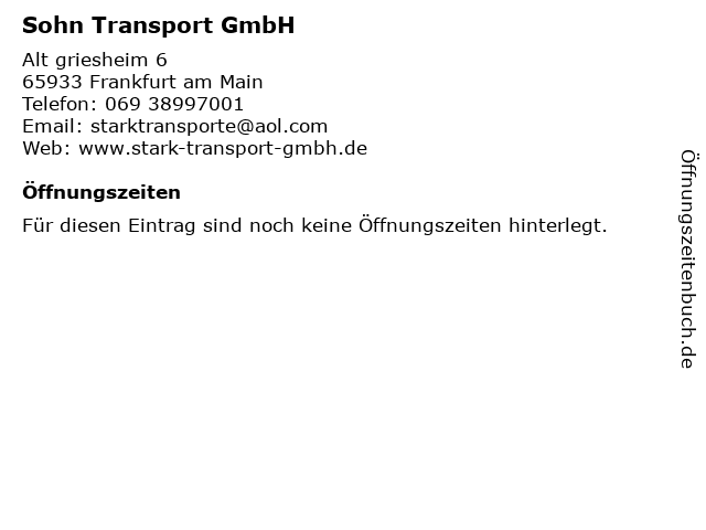 Branchen & Suchbegriffe zu Sohn Transport GmbH:sohn, transport |