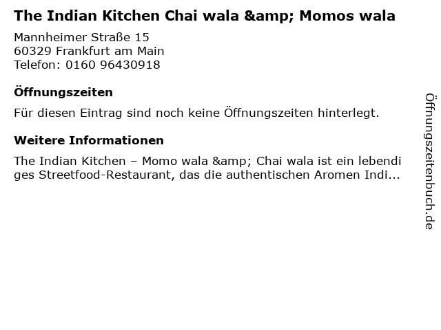 | The Indian Kitchen Chai wala & Momos wala anrufen | |