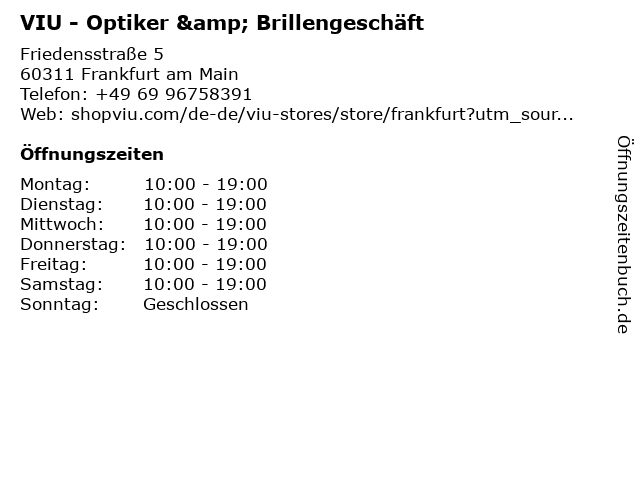 2 EyeVision by André Her Inh. André Her Optiker (Entfernung: 0,15 km) Bethmannstr. 50 - 54, 60311 Frankfurt am Main 6 |