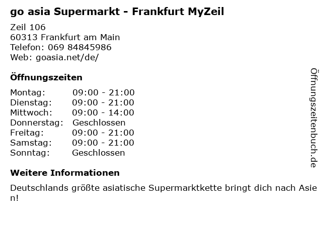 Branchen & Suchbegriffe zu go asia Supermarkt - Frankfurt MyZeil:asia, go, myzeil, supermarkt, supermärkte |