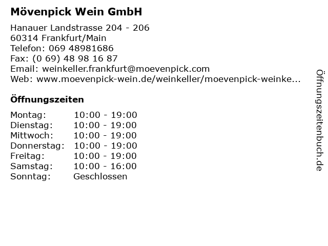| Adresse Mövenpick Wein GmbH in Frankfurt/Main anzeigen |