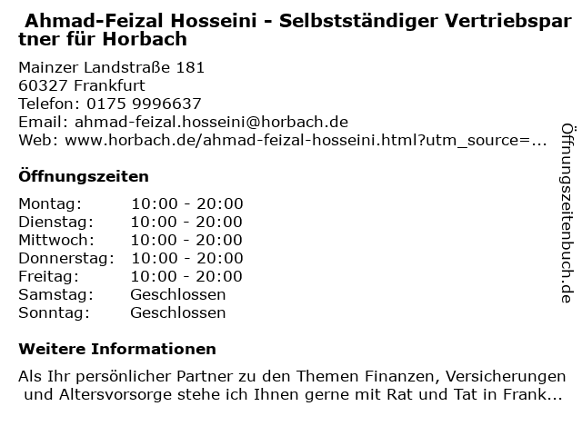 Branchen & Suchbegriffe zu Ahmad-Feizal Hosseini - Selbstständiger Vertriebspartner für Horbach:ahmad, berufshaftpflichtversicherung, berufsunfähigkeitsversicherung, feizal, finanzplanung, gebäude- und hausratsversicherung, horbach, hosseini, investmentservice, lebensversicherung, mietrechtsschutzversicherung, pflegeversicherung, selbstständiger, versicherungsberater, vertriebspartner |