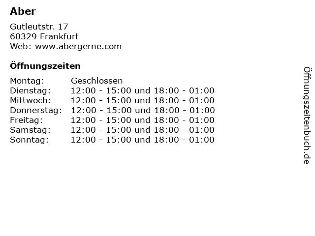 | Öffnungszeiten Aber in Frankfurt anzeigen | |