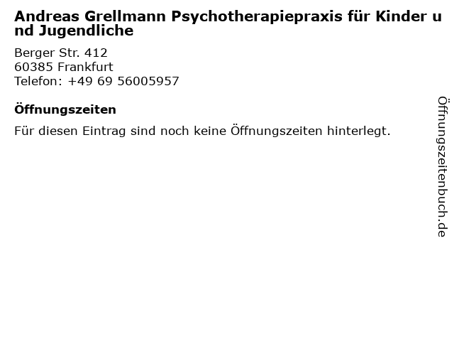 | Andreas Grellmann Psychotherapiepraxis für Kinder und Jugendliche anrufen | |