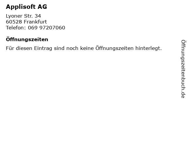 | Öffnungszeiten Applisoft AG in Frankfurt anzeigen | |