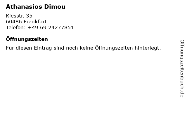 | Öffnungszeiten Athanasios Dimou in Frankfurt anzeigen | |