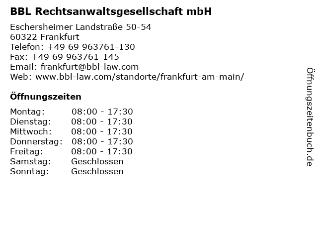 2 Heinle Dr. Rechtsanwaltsgesellschaft mbH (Entfernung: 0,19 km) Eschersheimer Landstraße 27, 60322 Frankfurt 5 Mainfort Rechtsanwaltsgesellschaft Steuerberatungsgesellschaft mbH (Entfernung: 0,78 km) Börsenstraße 2-4, 60313 Frankfurt Am Main 6 SCHARPF & Associates Rechtsanwaltsgesellschaft mbH (Entfernung: 1,13 km) Kirchnerstr. 6 -8, 60311 Frankfurt |