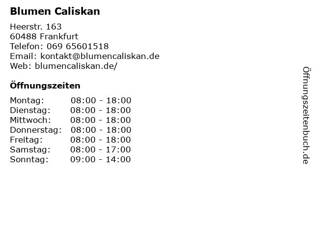 Öffnungszeiten Blumen Caliskan in Frankfurt anzeigen | |