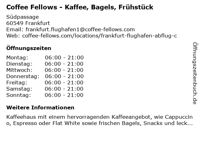 Öffnungszeiten Coffee Fellows - Kaffee, Bagels, Frühstück in Frankfurt anzeigen | |