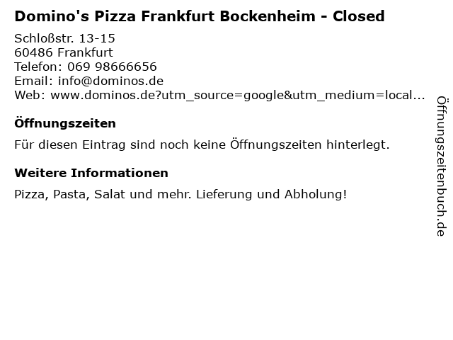 | Domino's Pizza Frankfurt Bockenheim - Closed anrufen | |