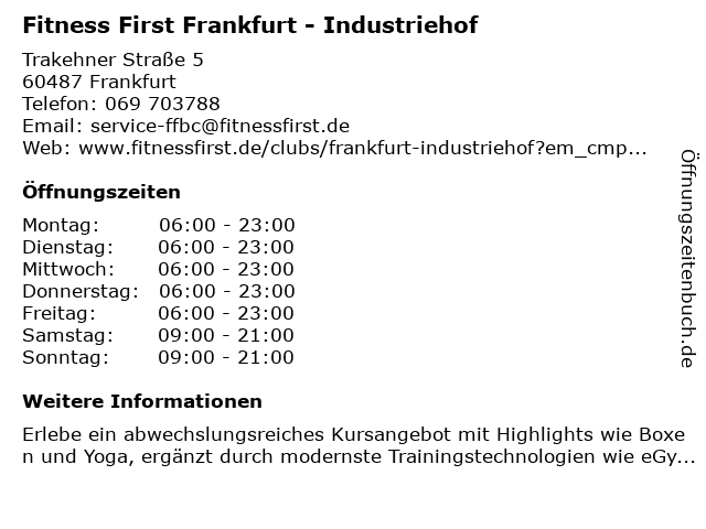 Branchen & Suchbegriffe zu Fitness First Frankfurt - Industriehof:first, fitness, fitnesscenter, industriehof, kraftsport, personal trainer, pilates-studio, spinning, yoga-studios |
