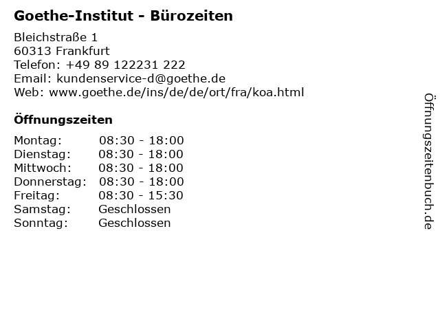 Branchen & Suchbegriffe zu Goethe-Institut - Bürozeiten:bürozeiten, goethe, institut, lernen, schule, sprach, sprachschule |