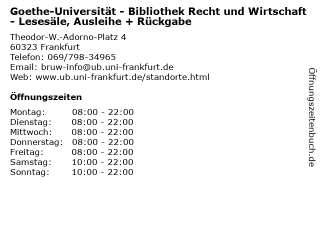 Branchen & Suchbegriffe zu Goethe-Universität - Bibliothek Recht und Wirtschaft - Lesesäle, Ausleihe + Rückgabe:ausleihe, bibliothek, buch, buchscanner, goethe, lesesäle, literaturen, main, recht, rückgabe, sprachen, universität, wirtschaft |