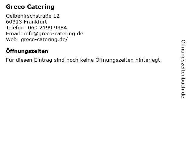 Öffnungszeiten Greco Catering in Frankfurt anzeigen | |