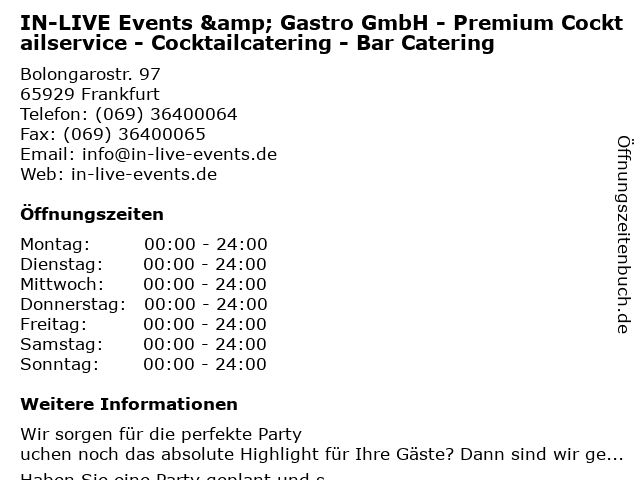 Branchen & Suchbegriffe zu IN-LIVE Events & Gastro GmbH - Premium Cocktailservice - Cocktailcatering - Bar Catering:bar, barkeeper, barkeeper-service, catering, cocktail-schulen, cocktailcatering, cocktailkurse, cocktails, cocktailservice, event catering, event-dienstleister, event-dienstleistungen, eventlocations, events, eventservice, firmenfeiern, gastro, in-live, live, messe-catering, mobile cocktailbars, mobiler barkeeper, mobiler cocktailservice, premium, teamevents |