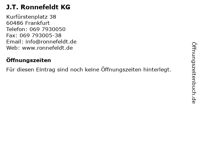 | Öffnungszeiten J.T. Ronnefeldt KG in Frankfurt anzeigen | |