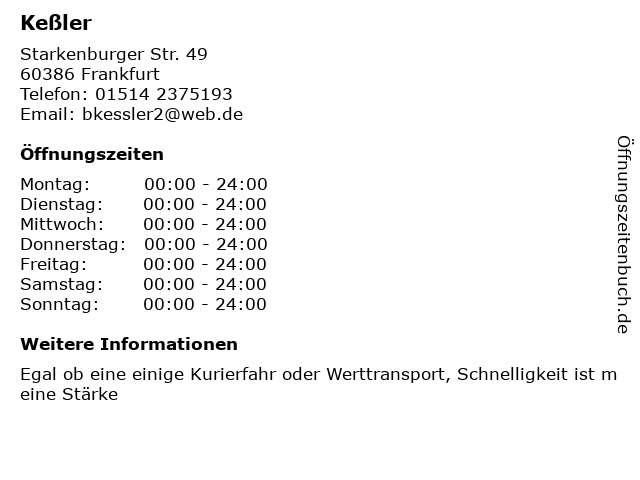 | Öffnungszeiten Keßler in Frankfurt anzeigen | |