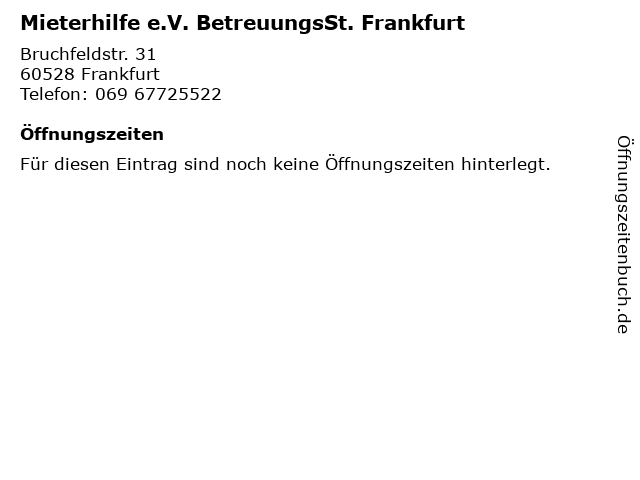 | Mieterhilfe e.V. BetreuungsSt. Frankfurt anrufen | |