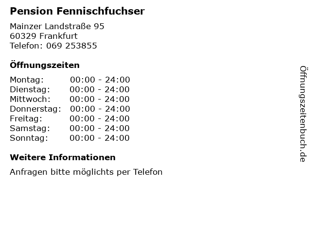 Öffnungszeiten Pension Fennischfuchser in Frankfurt anzeigen