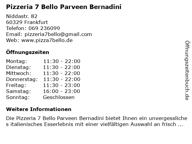 Branchen & Suchbegriffe zu Pizzeria 7 Bello Parveen Bernadini:bello, bernadini, parveen, pizzeria  |