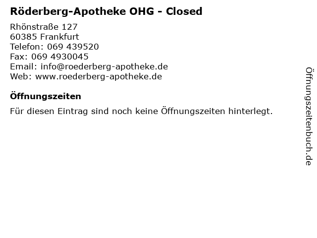 | Röderberg-Apotheke OHG - Closed anrufen | |