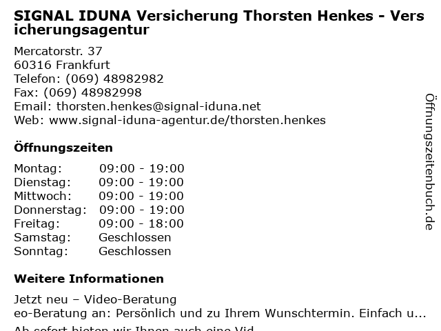 1 Frankfurt Estate Thorsten Herbert Immobilien Immobiliendienstleistungen (Entfernung: 0,34 km) Bornheimer Landstraße 50, 60316 Frankfurt Am Main 5 SIGNAL IDUNA Versicherung Antonio Fiusco (Entfernung: 0,97 km) Dahlmannstr. 38a, 60385 Frankfurt am Main 6 |
