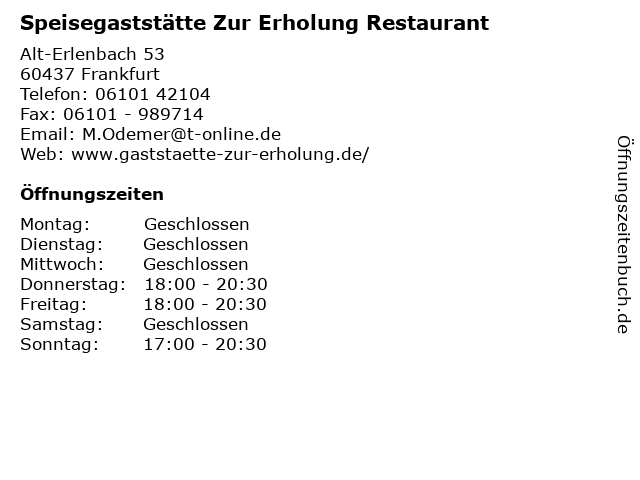 Branchen & Suchbegriffe zu Speisegaststätte Zur Erholung Restaurant:erholung, essen, getränke, kaffee, restaurant, speisegaststätte, zur |