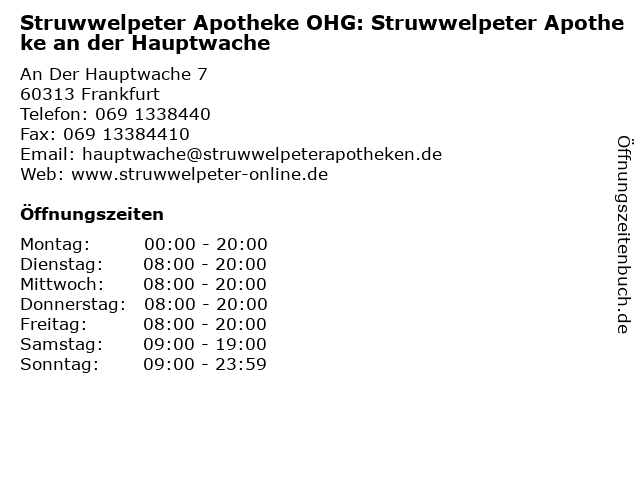 Branchen & Suchbegriffe zu Struwwelpeter Apotheke OHG: Struwwelpeter Apotheke an der Hauptwache:an, apotheke, hauptwache, struwwelpeter |
