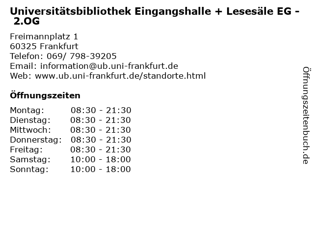 Branchen & Suchbegriffe zu Universitätsbibliothek Eingangshalle + Lesesäle EG - 2.OG:2.og, bibliothek, buch, buchscanner, eg, eingangshalle, lesesäle, literaturen, main, sprachen, universitätsbibliothek |
