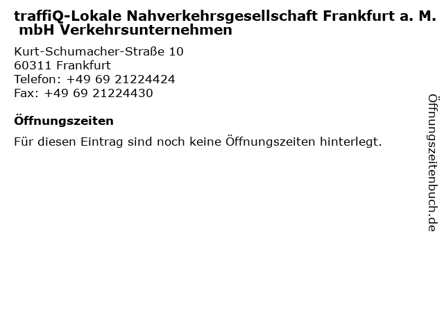 | traffiQ-Lokale Nahverkehrsgesellschaft Frankfurt a. M. mbH Verkehrsunternehmen anrufen | |