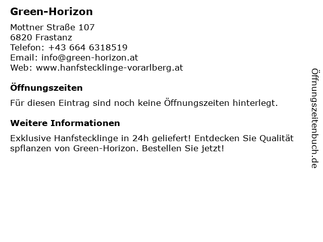 | Öffnungszeiten Green-Horizon in Frastanz anzeigen | |