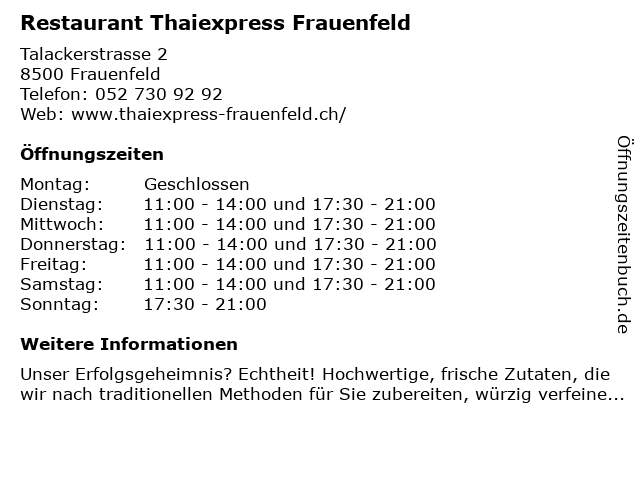 Branchen & Suchbegriffe zu Restaurant Thaiexpress Frauenfeld:caterer, fast food und take away, frauenfeld, restaurant, restaurantzubehör, thaiexpress, thailändisches restaurant |