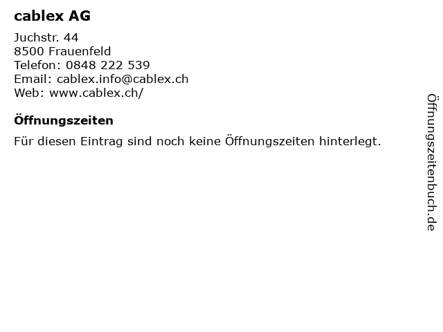 | Öffnungszeiten cablex AG in Frauenfeld anzeigen | |