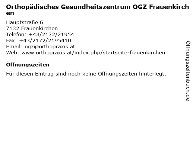 | Orthopädisches Gesundheitszentrum OGZ Frauenkirchen anrufen | |