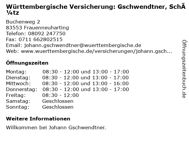 Branchen & Suchbegriffe zu Württembergische Versicherung: Gschwendtner, Schütz:gschwendtner, schütz, versicherung, württembergische |