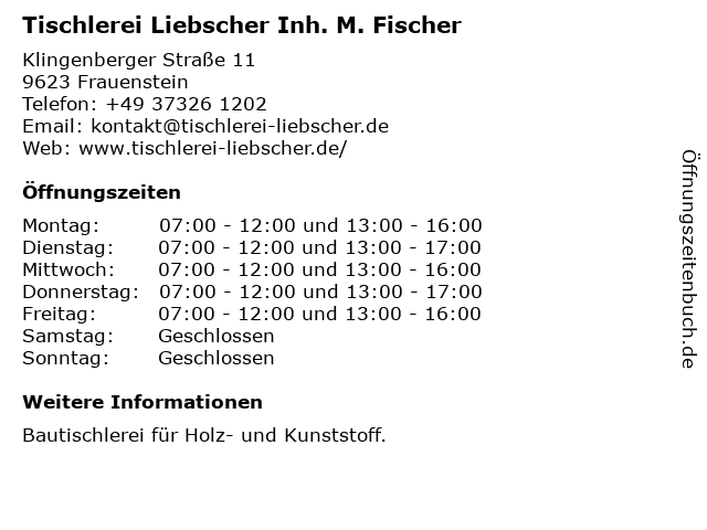 | Freitag | 07:00-12:00 und 13:00-16:00 |