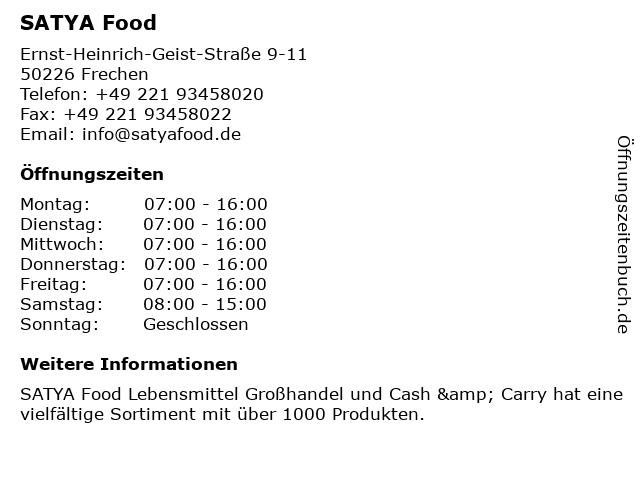 | Öffnungszeiten SATYA Food in Frechen anzeigen | |