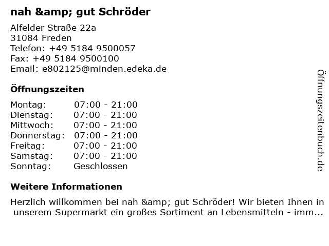 | Adresse nah & gut Schröder in Freden anzeigen |