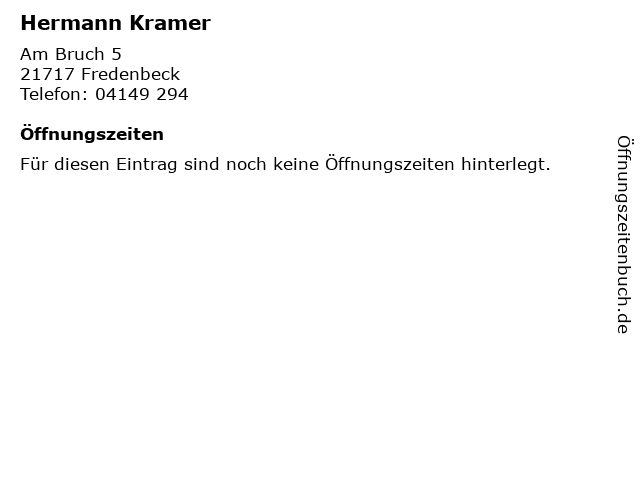 | Öffnungszeiten Hermann Kramer in Fredenbeck anzeigen | |