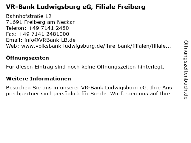 | VR-Bank Ludwigsburg eG, Filiale Freiberg anrufen | |